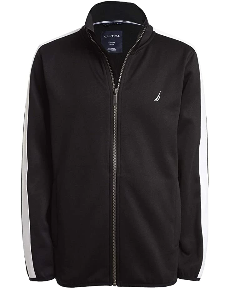 - This stylish jacket features Nautica signature taping at sleeves and binding at cuffs, full zip closure, Convenient side pockets, mock neck for those windy days and internal woven wickingd. Tag to easily identify it and locker loop