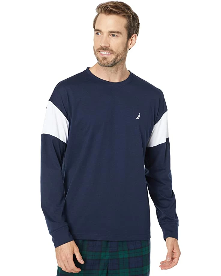 - Whether it’s a day of lounging at home or you’re getting ready for your nighttime slumber, do it comfortably in the Nautica® Color-Block Long Sleeve Sleep Top.