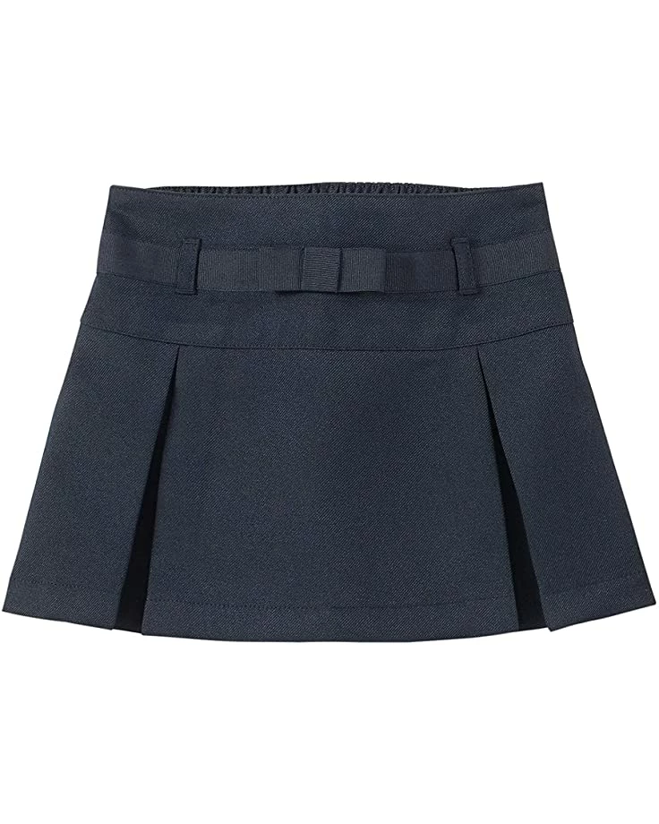 - Meet school uniform requirements with this pleated skort featuring an adorable ribbon and front bow Permanently bartacked to skirt, elastic waistband, belt loops and a comfy short underneath to give her confidence and freedom to move at school