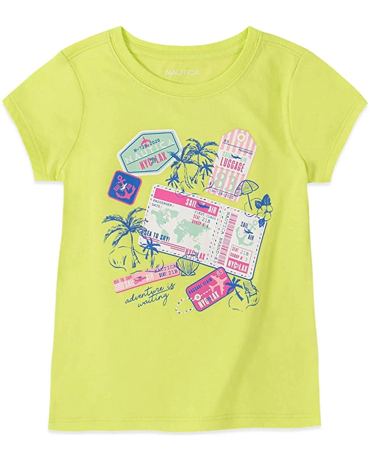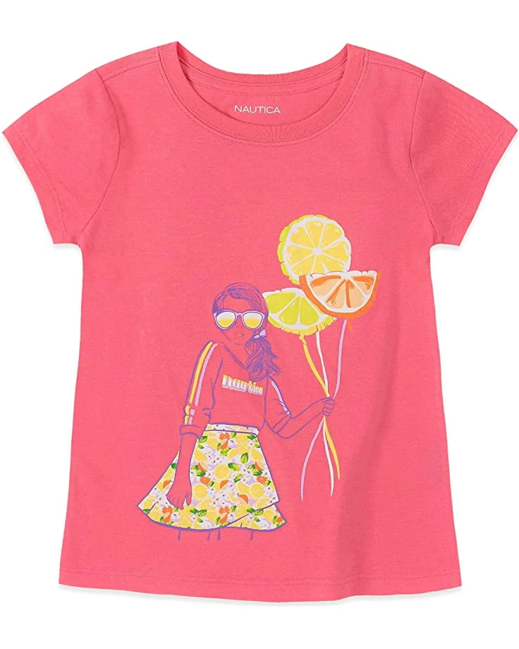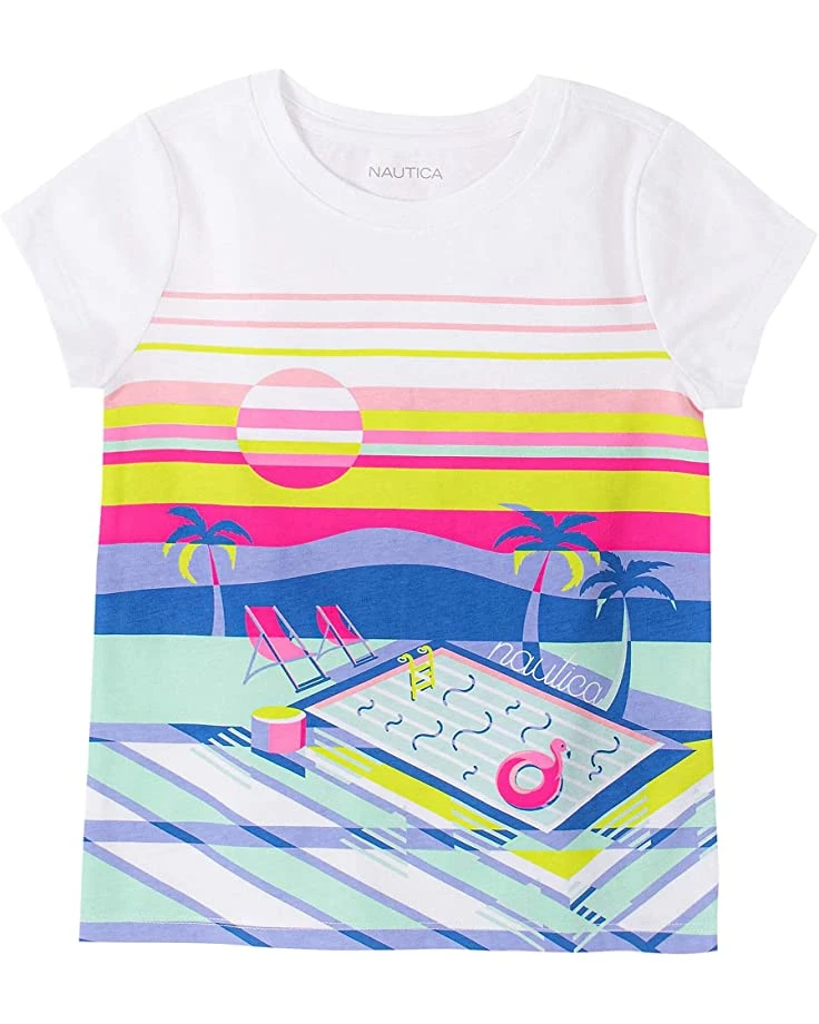 - Give them a fun retro look in the comfy Nautica® Girls’ Short Sleeve Graphic Tee Shirt. Relaxed-fit T-shirt flaunts a bright and beachy vibe with colorful printed designs.