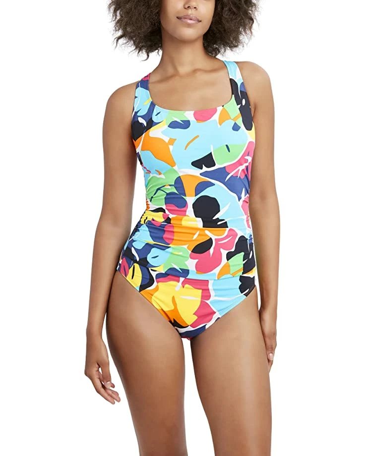 - Style your poolside look wearing the Nautica® Jungle Mio Swimsuit. It features an allover printed design.