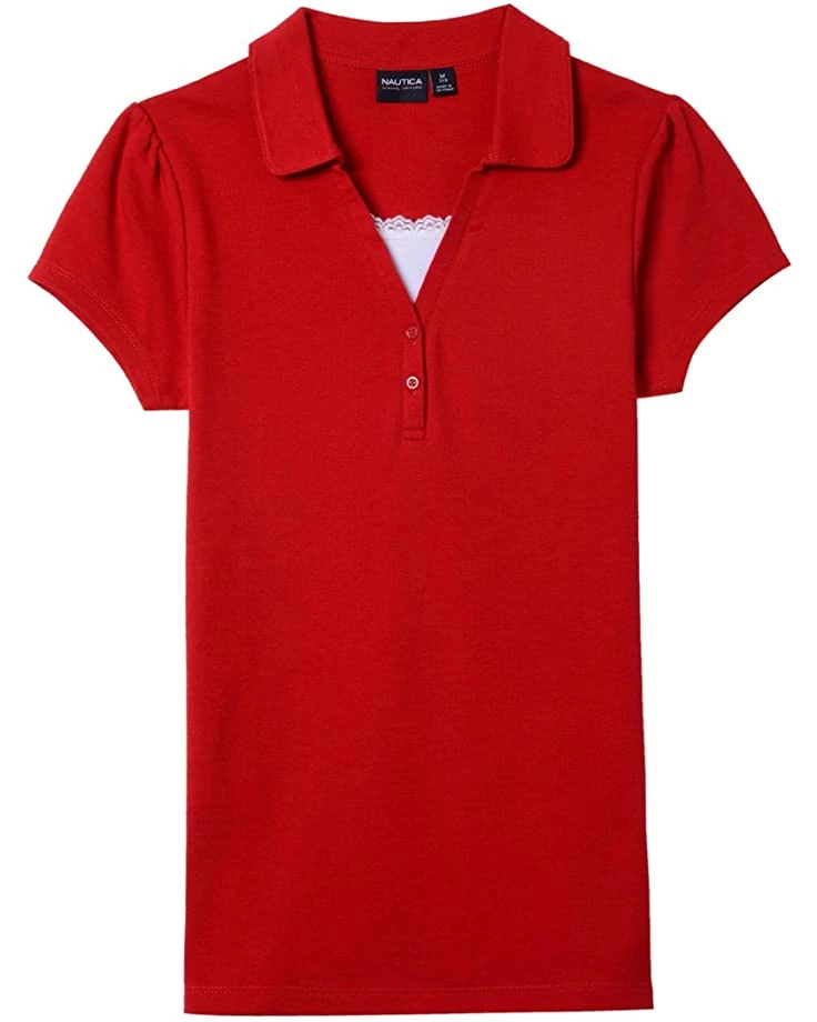 Nautica Junior’s Uniform Short Sleeve Pique Polo with Camisole Trim | Shirts & Tops