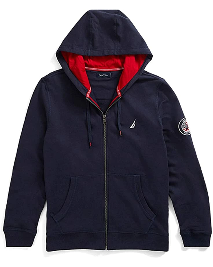 Nautica Men’s American Flag Logo French Terry Full Zip Hoodie | Hoodies & Sweatshirts