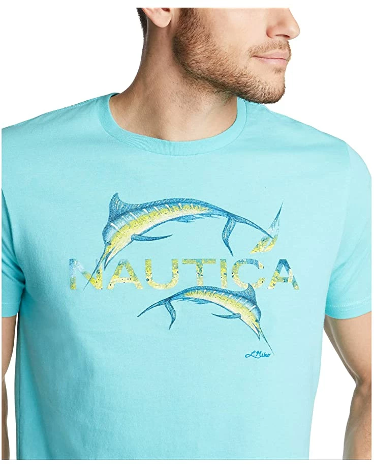 Nautica Men’s Short Sleeve 100% Cotton Fish Print Series Graphic Tee Shirt | Shirts & Tops