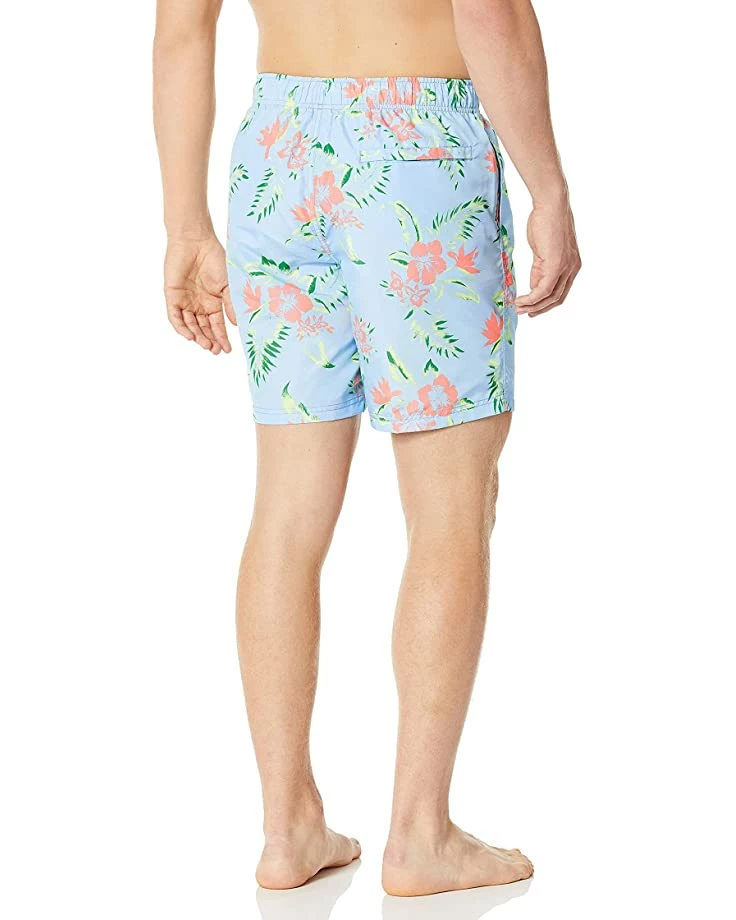 - Elastic waist swim shorts with floral print and quick-drying finish