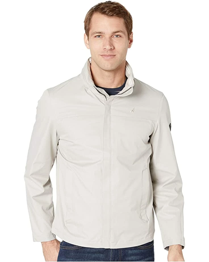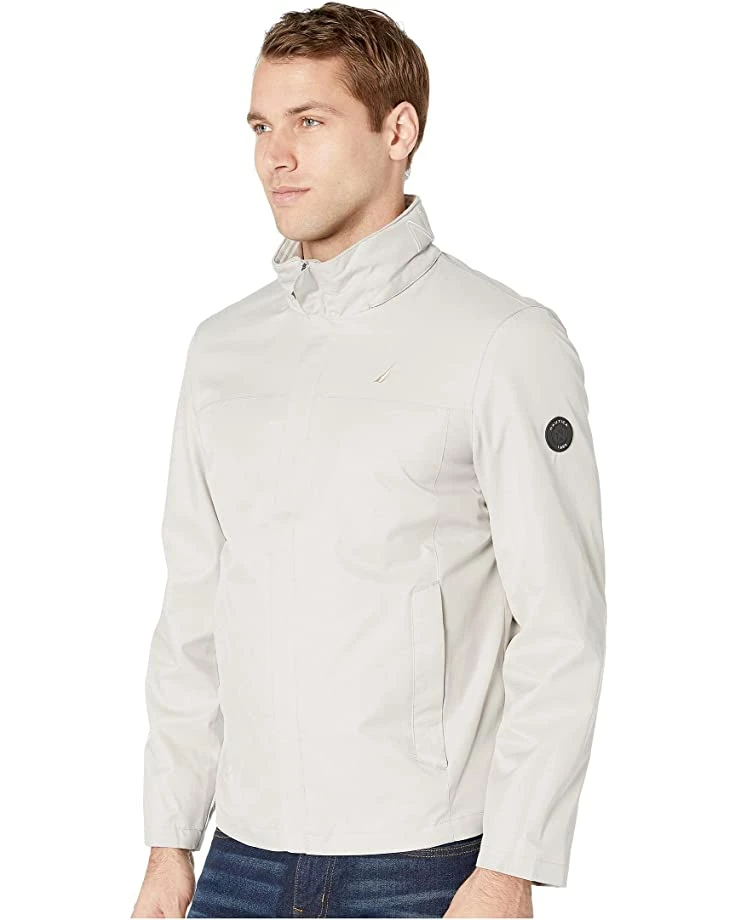 - Mock collar sports a double-tipped interior trim and a Nautica logo embroidery at the back.