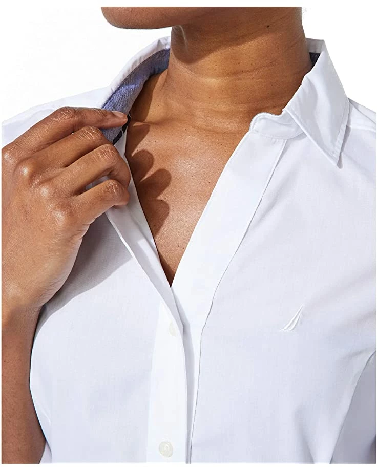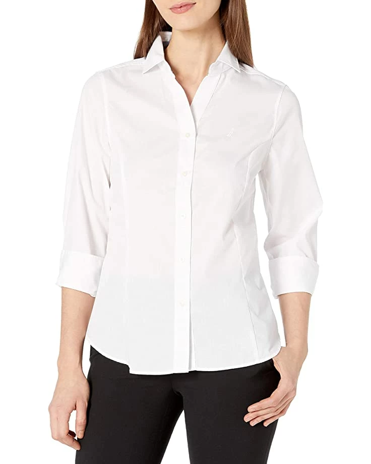 Nautica Women’s Casual Comfort 3/4 Sleeve Button Down Solid Shirt | Shirts & Tops
