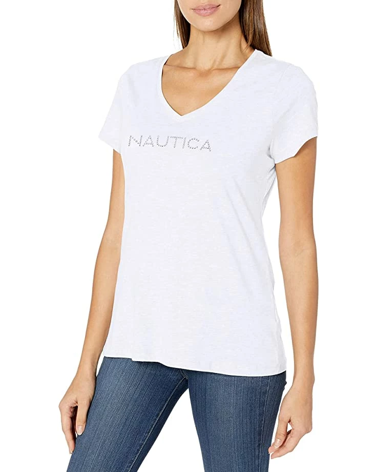 Nautica Women’s Easy Comfort Supersoft 100% Cotton Classic Logo T-Shirt | Shirts & Tops