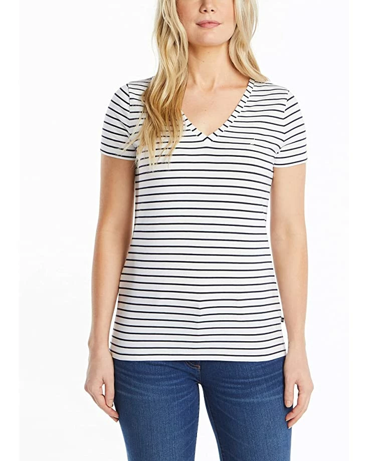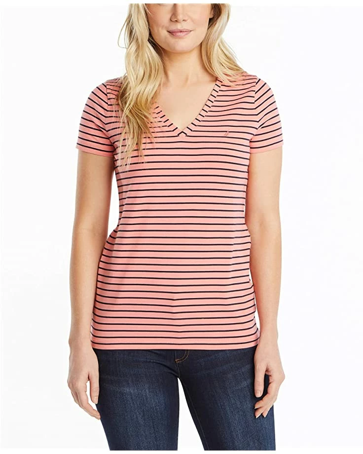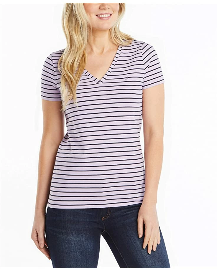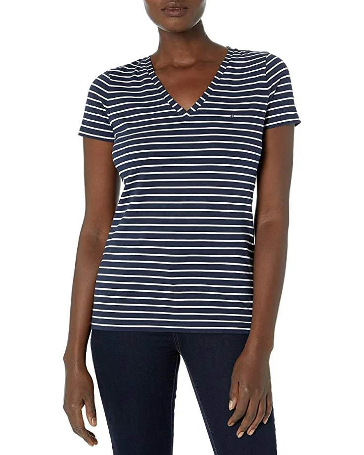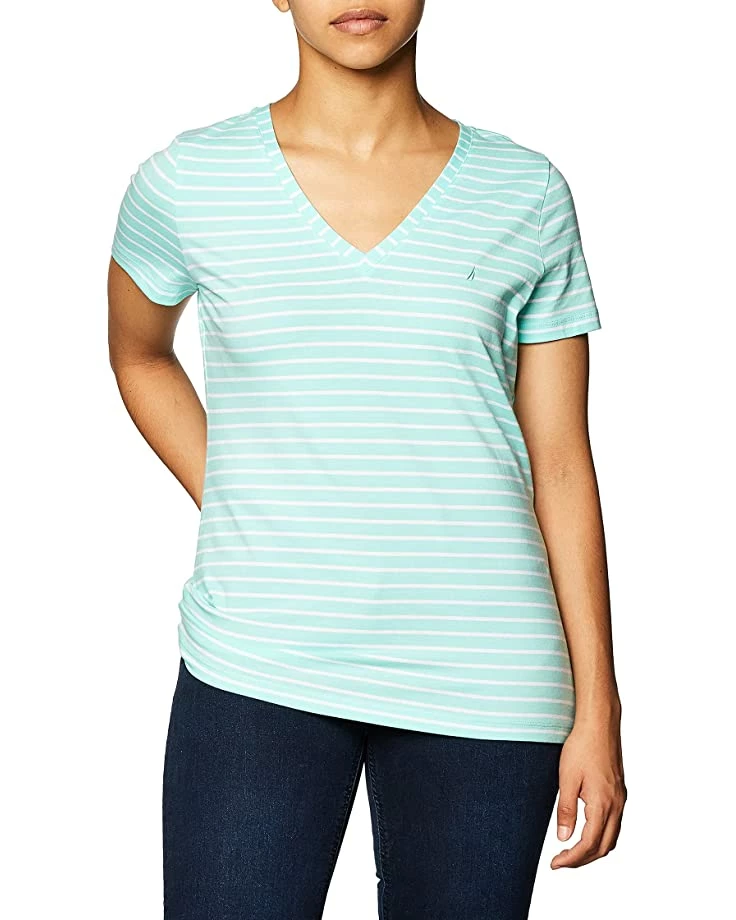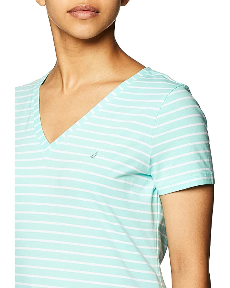 Nautica Women’s Easy Comfort V-Neck Striped Supersoft Stretch Cotton T-Shirt | Shirts & Tops