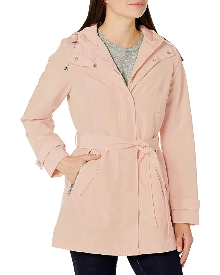 Nautica Women’s Hooded Raincoat with Belt Jacket | Coats & Outerwear