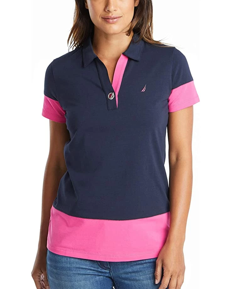Nautica Women’s Toggle Accent Short Sleeve Soft Stretch Cotton Polo Shirt | Shirts & Tops