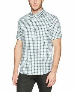Nautica Men’s Wrinkle Resistant Short Sleeve Plaid Button Front Shirt | Shirts & Tops